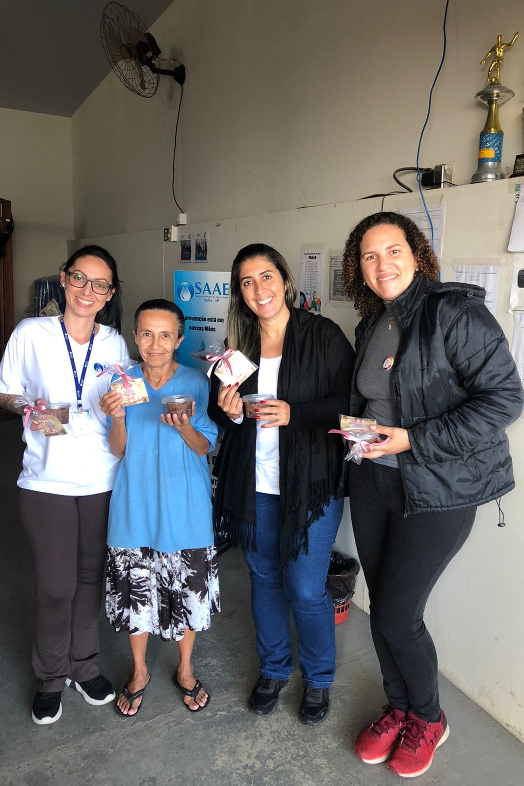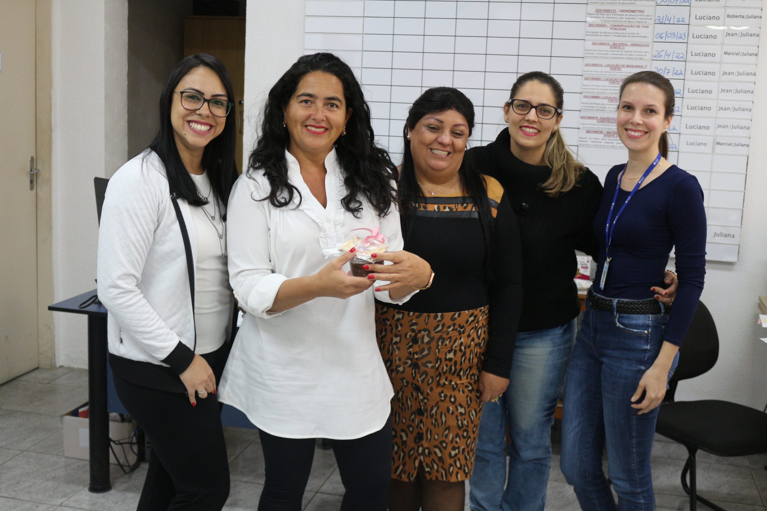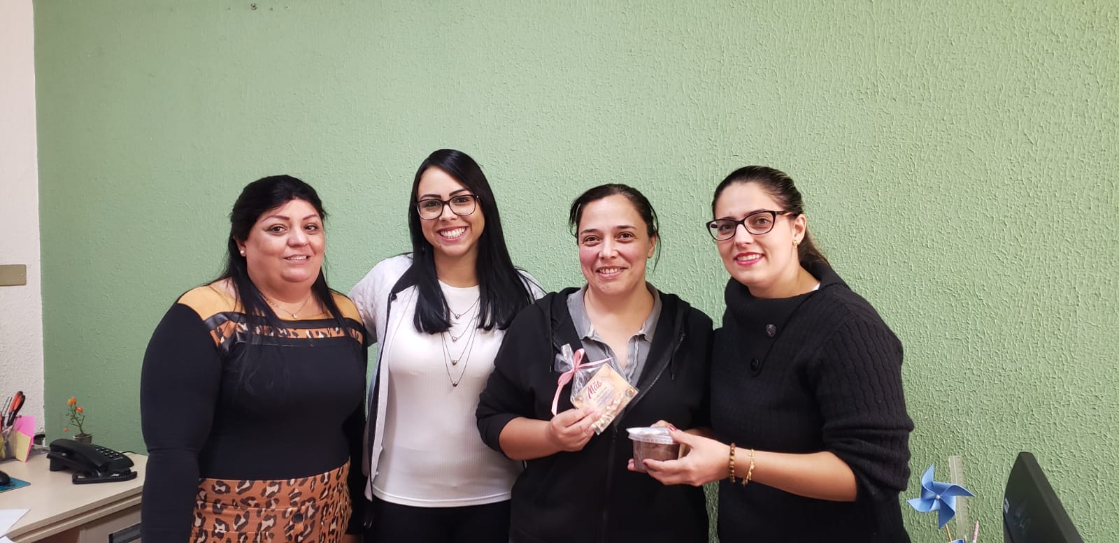O Grupo de Trabalho Humanizado passou em todas as instalações da autarquia, de setor em setor, para presentear cada uma dessas mães com bolo de pote e uma lembrança, que continha um cartão e um par de brincos de pérola, cumprimentando-as pela data.