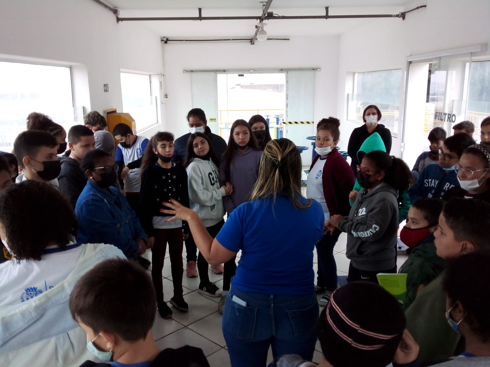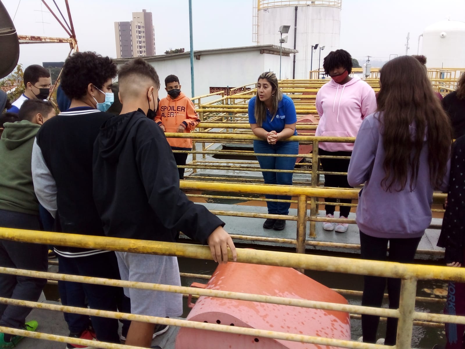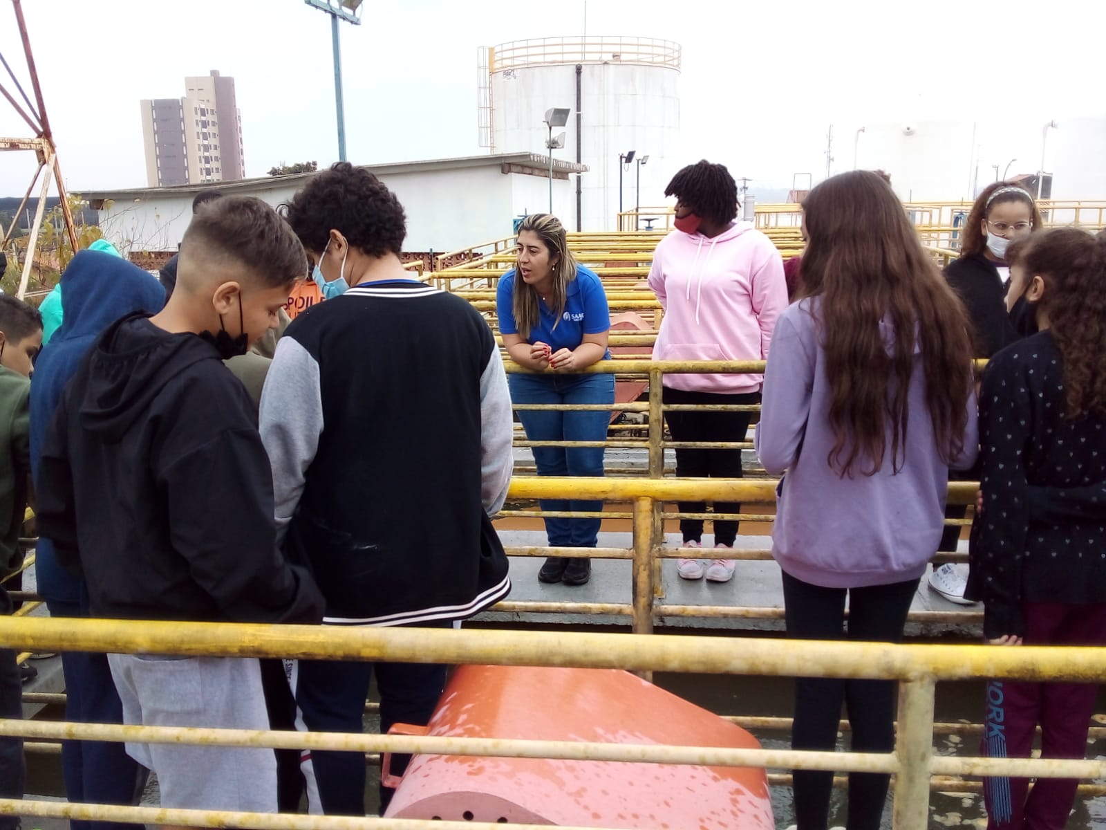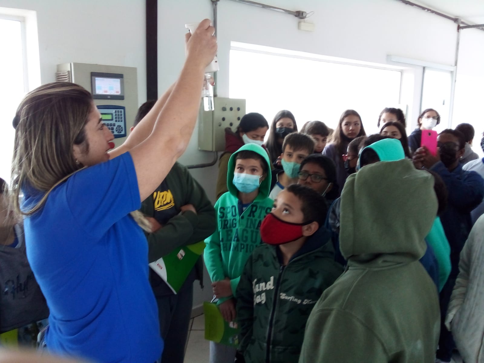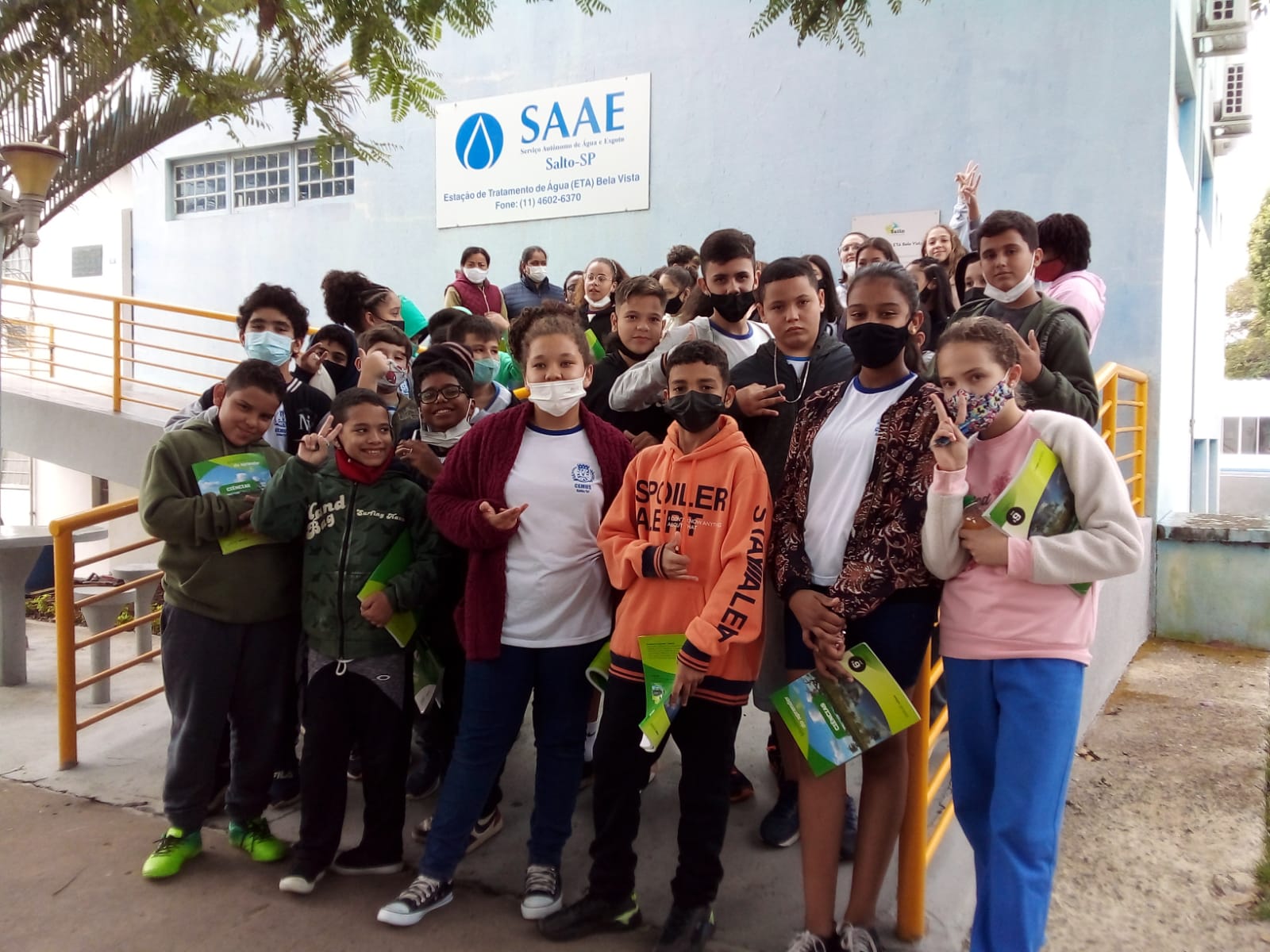 Como parte dos seus estudos de Ciências e Educação Ambiental, cerca de 40 alunos do sexto ano do Centro de Educação Municipal “Professor João Batista Dalla Vecchia” (CEMUS I) estiveram na manhã do dia 20 de junho na Estação de Tratamento de Água (ETA) Bela Vista. Eles primeiro assistiram a um vídeo em que é explicado, passo a passo, como o SAAE trata e distribui a água em Salto, desde a captação nos mananciais até chegar às torneiras das casas, passando pelos testes e monitoramentos de qualidade. Depois os estudantes fizeram um pequeno tour pela ETA, em que puderam ver – na prática – como funciona cada processo.
