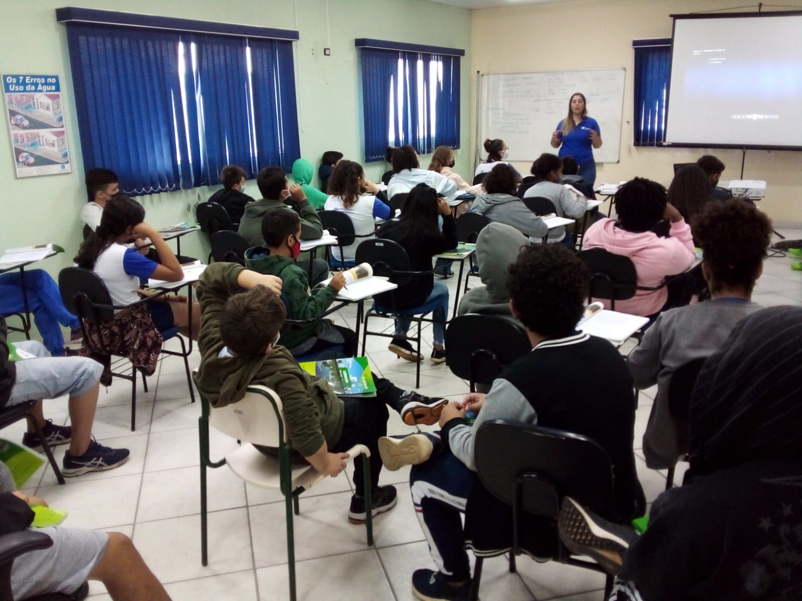 Eles tiveram as suas dúvidas esclarecidas pela coordenadora da ETA, Suellen Castro, sobre questões como o uso doméstico consciente, os produtos que são adicionados à água bruta para que ela se torne potável e apropriada para o consumo humano e também sobre as microbolhas de ar que se formam às vezes na água – um fenômeno natural e inofensivo, causado pela pressão no encanamento.