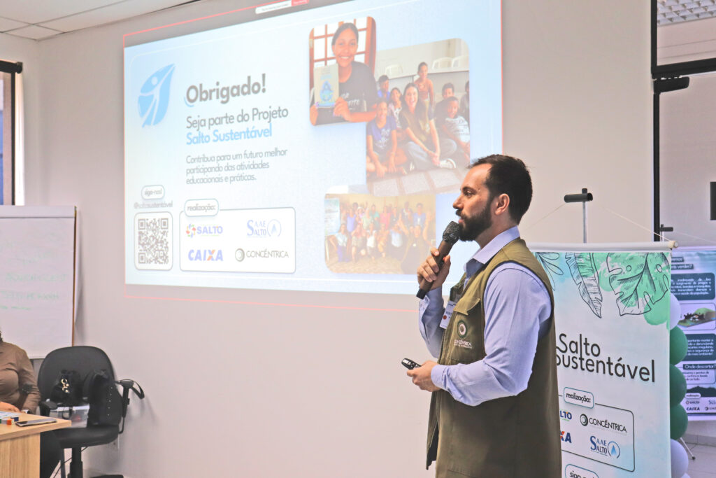 O superintendente do SAAE, César Piva, fez a abertura do evento e destacou em sua fala a importância do combate ao desperdício de água e as obras em andamento que vão trazer mais segurança hídrica à cidade e à região, como a ETA Barnabé (Pedra Branca), a curto prazo, e a Barragem do Piraí.