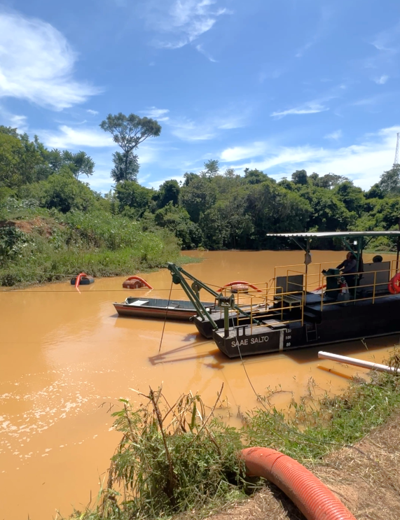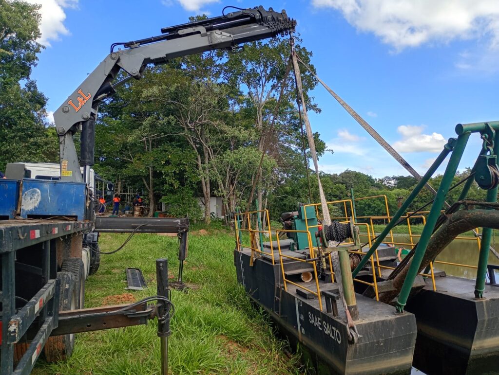 A draga está sendo utilizada para a remoção de bancos de areia e outros detritos, como galhos, que se acumulam naturalmente na calha e dificultam a vazão do rio e a sucção pelas bombas da ETA.